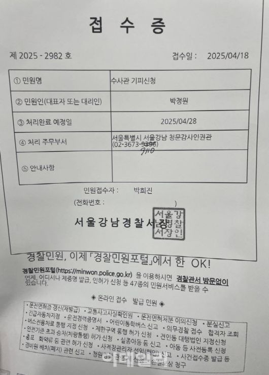 김태연 변호사, 강남경찰서에 기피신청서 접수