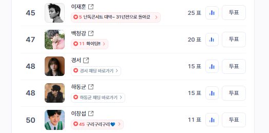 이러한 팬들의 지지는 디시트렌드 주간 투표에서도 드러났다. 4월 3주차 디시트렌드 '이 가수의 발라드는 내 심장을 쥐고 흔들어! 팬들이 뽑은 1위는?' 주간 투표에서 경서는 18일 오후 2시 16분 기준 48위(15표)를 기록했다. 장르적 범주를 넘는 감성 전달력과, 변함없는 팬심이 이어지고 있음을 보여주는 대목이다.