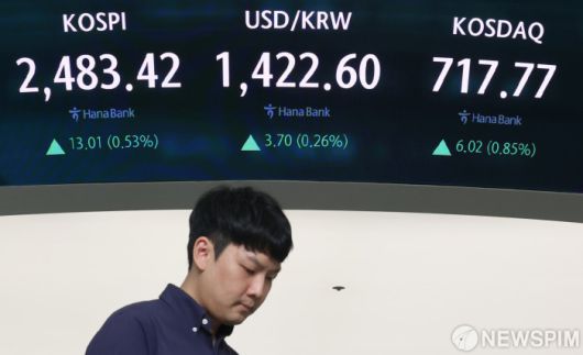 18일 한국거래소에 따르면 유가증권시장(코스피) 지수는 전 거래일 대비 0.53%(13.01p) 오른 2483.42에 거래를 마쳤다.