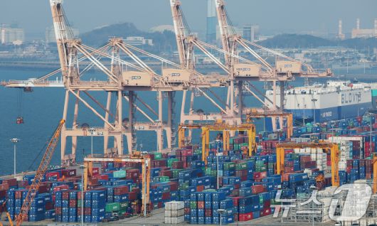 10일 경기 평택시 포승읍 평택항 수출 야적장에 컨테이너들이 쌓여있다. 2025.4.10/뉴스1 ⓒ News1 김영운 기자 |