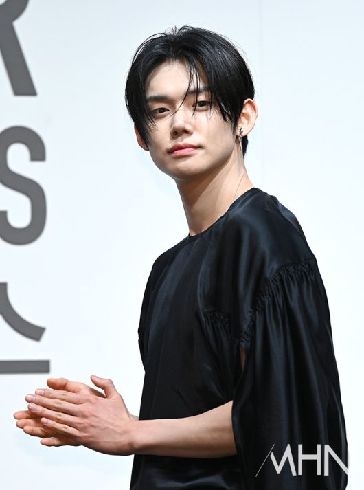 (MHN 이현지 기자) 그룹 투모로우바이투게더가 18일 오후 서울 동대문 DDP아트홀에서 진행된 한 명품 브랜드 행사에 참석해 포토타임을 갖고 있다.