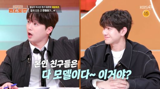 이를 지켜보던 배우 남윤수는 "저분들은 어떤 거 때문에 나오신 거냐"고 물었고, 이찬원은 "내 남자들에게 뭐라고 하지 마라. 자기 친구들은 다 모델이라 키 185cm 된다고 내 친구들도 키 175cm씩은 된다"고 홀로 폭주해 웃음을 안겼다.