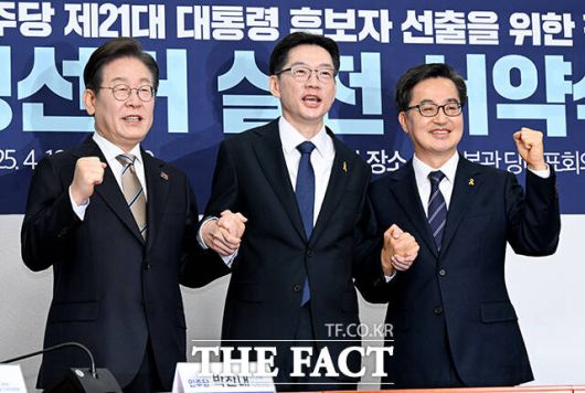 [더팩트ㅣ국회=김세정 기자] 더불어민주당의 제21대 대통령 후보 경선이 이번 주말 충청과 영남을 잇는 이틀 연속 투표 결과 발표로 본격적인 서막을 연다. 이재명 후보의 우세가 예상되는 가운데 김경수 후보와 김동연 후보가 각자의 지역 기반에 힘입어 2위 자리를 놓고 치열한 경쟁을 벌이고 있다.