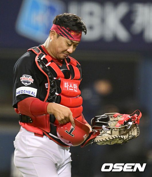 [OSEN=잠실, 김성락 기자] 18일 오후 서울 잠실야구장에서 2025 신한 SOL Bank KBO리그 두산 베어스와 KIA 타이거즈의 경기가 열린다.이날 두산은 콜어빈, KIA는 윤영철을 선발로 예고했다.5회말 종료 후 KIA 김태군이 더그아웃으로 이동하고 있다. 2025.04.18 / ksl0919@osen.co.kr |