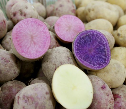 붉거나 보라색의 컬러 감자들. 농촌진흥청 제공 |