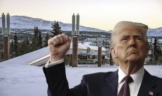 도널드 트럼프 대통령과 미국 알래스카 트랜스-알래스카 파이프라인. [AP·게티이미지코리아] |