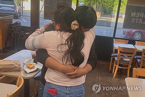 불법체류자로 오인돼 당국에 구금됐다 17일 풀려난 후안 카를로스 로페스-고메스가 어머니와 포옹하는 모습 |
