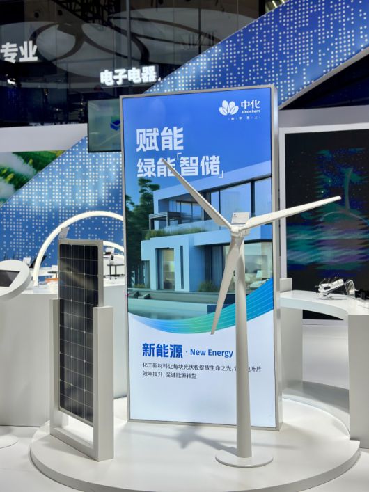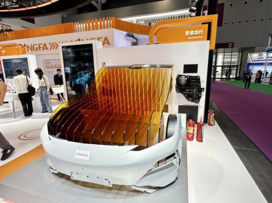 중국이 소재 기술력을 끌어올린 것은 비단 첨단산업에만 국한된 게 아니다. 중국 기업들은 국내 화학 업체들이 기술적 우위를 점해온 모빌리티와 신재생에너지에서도 자사의 기술이 활용된 제품들을 즐비하게 선보였다. 킹파는 자동차용 내외장재 소재를 대거 공개했는데 전면등, 후미등, 좌석 시트에 사용된 소재뿐 아니라 전기차 배터리팩 등을 전시했다. 시노켐은 신재생에너지 분야 경쟁력을 강조했다. 시노켐은 전시 부스 정중앙에 태양광셀과 풍력발전기 모형을 내놓고 신재생에너지 발전과 관련한 소재 기술을 상세히 설명했다.