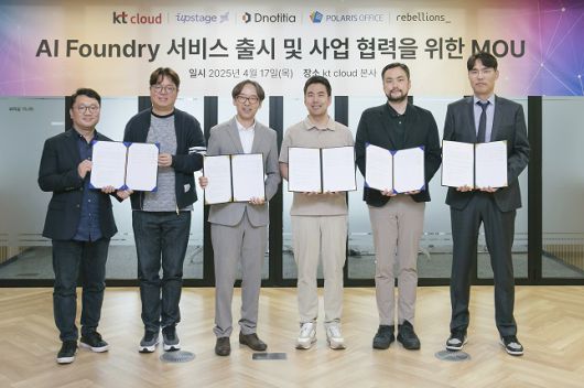KT클라우드가 업스테이지, 디노티시아, 폴라리스오피스, 리벨리온과 'AI 파운드리(AI Foundry)'사업을 위한 전략적 파트너십을 체결했다고 밝혔다.