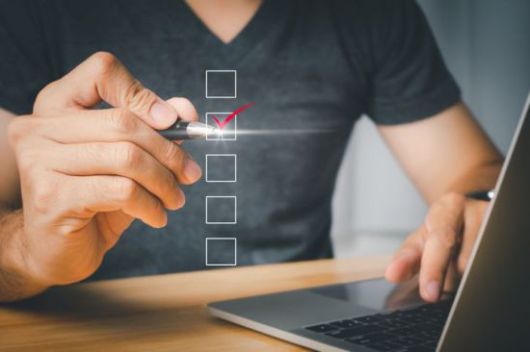 노트북 앞에 앉아있는 사람이 체크리스트 상자에 체크 표시를 하는 모습. 게티이미지뱅크 |