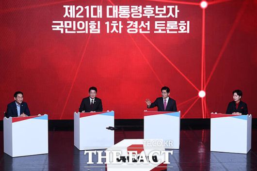 국민의힘 대선 경선 후보들은 19일과 20일 이틀동안 A·B로 나뉘어 1차 경선 토론회에 참가한다. A조 토론 주제는 '청년 미래', B조는 '사회통합'이다. A조에는 유정복·안철수·김문수·양향자 후보, B조에는 이철우·나경원·홍준표·한동훈 후보가 포함됐다.