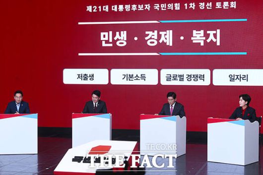 [더팩트ㅣ김수민 기자] 국민의힘이 19일 6·3 조기 대선 경선 후보를 압축하기 위한 첫 토론회를 열었다. 후보들은 2030 유권자를 겨냥할 수 있는 저마다의 청년 정책을 내놓았다. 윤석열 전 대통령의 12·3 비상계엄 선포를 두고 '반탄파'(탄핵 반대)와 '찬탄파'(탄핵 찬성) 간 신경전이 벌어지기도 했다.