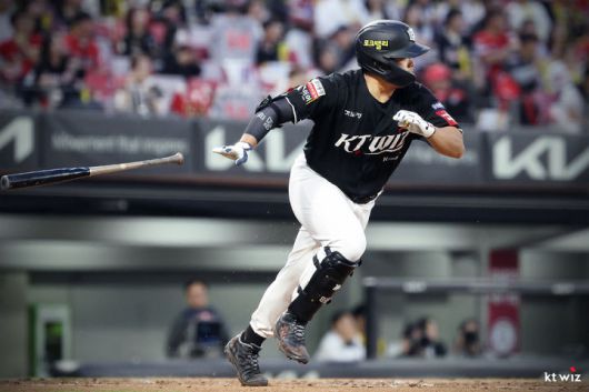 [서울=뉴시스] 프로야구 KT 위즈 강백호가 지난 17일 광주-기아 챔피언스필드에서 열린 2025 신한 쏠뱅크 KBO리그 KIA 타이거즈와의 경기에서 안타를 치고 있다. (사진=KT 위즈 제공) 2025.04.17. *재판매 및 DB 금지 |