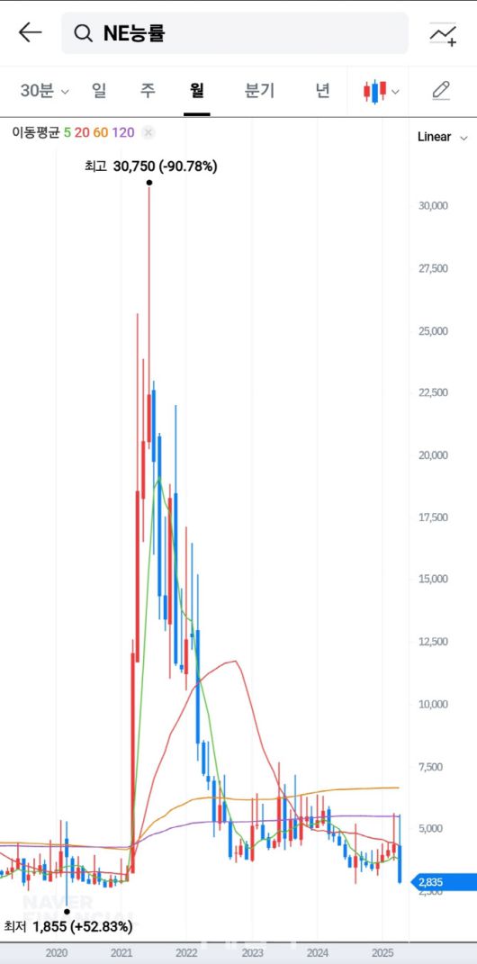 19일 한국거래소에 따르면 2022년 대선에서 윤석열 전 대통령 테마주로 거론됐던 NE능률(053290)은 이달 18일 종가 기준 2835원을 기록했다. NE능률은 최대주주인 윤호중 한국야쿠르트 회장이 윤 전 대통령과 같은 파평 윤씨라는 이유로 테마주로 묶여 2021년 2월 3000원대였던 주가가 그해 6월 3만원을 넘어서며 10배 이상 급등했었다. 그러나 이후 지속적인 하락을 거듭하며 테마주로 분류되기 이전보다 주가가 더 떨어진 상태다.