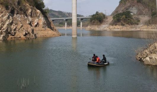 경북 영주시 평은면 영주댐 인근 다리 아래에서 소방대원들이 수색작업을 벌이고 있다. [경북소방본부 제공] |
