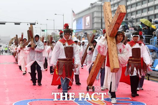 [더팩트ㅣ서예원 기자] 2025 부활절 퍼레이드가 19일 오후 서울 종로구 광화문광장에서 열린 가운데 참가자들이 행진을 하고 있다.