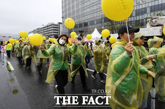 2025 부활절 퍼레이드가 19일 오후 서울 종로구 광화문광장에서 열린 가운데 참가자들이 행진을 하고 있다. /서예원 기자 |