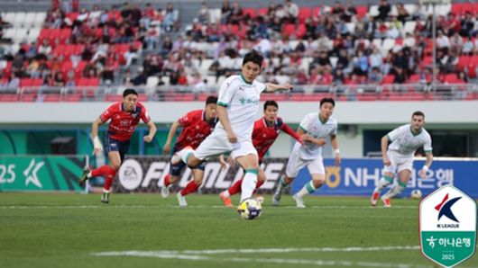 전반을 1-0으로 앞선 대전은 후반 9분 주민규의 페널티킥 골로 승부를 더 기울였습니다.