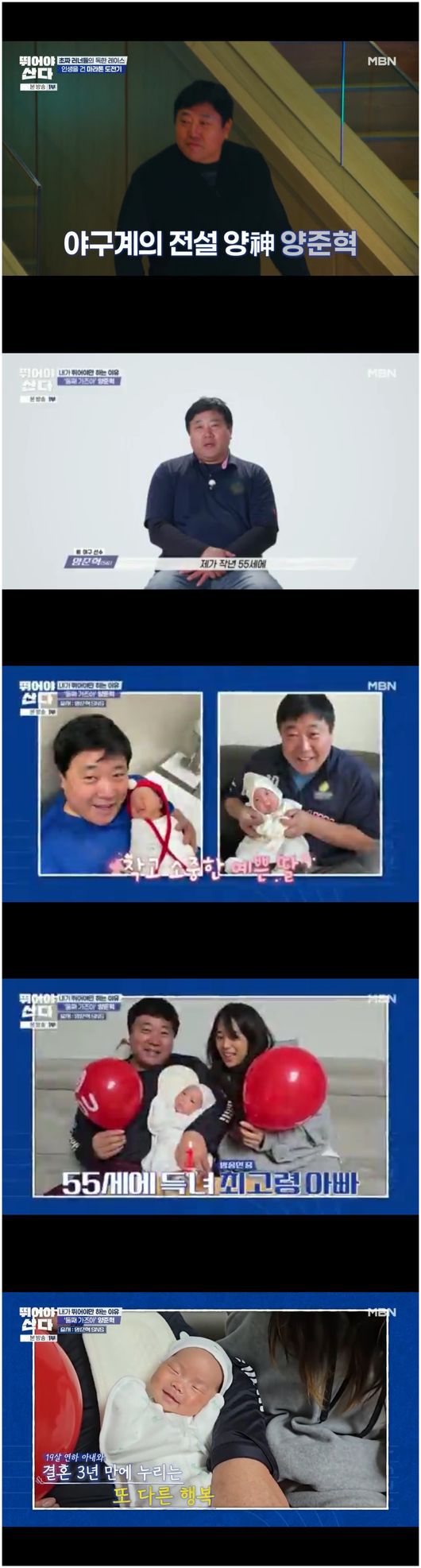 또 다른 아빠이자 양신 양준혁은 “제 키워드는 ‘둘째 가즈아’다. 아내랑 결혼할 때만 해도 정자 능력이 있는데, 결혼하고 70%로 떨어졌다. 그래서 건강을 회복한 다음에 둘째를 가지려고 한다”라면서 “와이프가 야구 팬이다. 와이프랑 결혼할 때 약속한 게 있다. 아들을 낳으면 아들 의사랑 상관없이 무조건 야구를 시킨다”라며 모든 계획이 있다고 밝혔다.