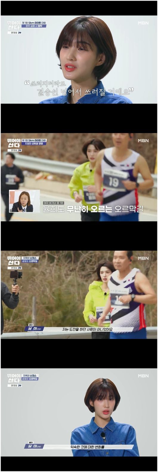 율희는 “모르는 분도 계실 거다. 결혼, 출산, 이혼을 겪으면서 작년에 너무 힘들었다. ‘뛰어야 산다’라는 프로그램을 통해서 한계를 넘고 싶다”라며 덤덤하게 포부를 밝혔다.