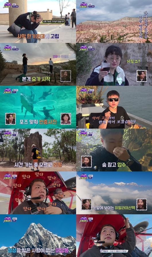 초대형 악어와의 수영부터 최애 개미집 관찰까지 도파민 폭발 호주 여행을 마무리한 빠니보틀, 튀르키예 대자연 속에서 트레킹과 요가로 힐링 끝판왕을 보여준 원지, 고소공포증을 딛고 네팔 히말라야 상공에 올라 감동의 눈물을 흘린 곽튜브, 각기 다른 방식으로 여행을 즐긴 이들은 기분 좋은 웃음과 가슴 벅찬 울림을 동시에 챙겼다.