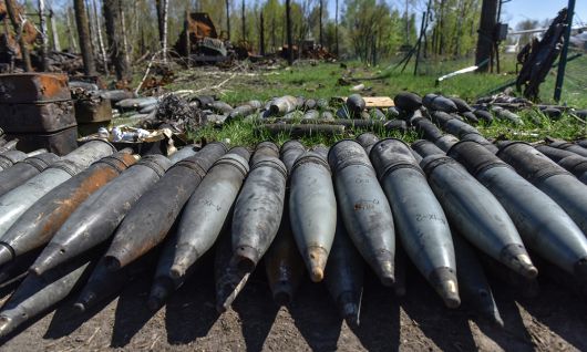 우크라이나 전선에 러시아군이 버리고 간 포탄들이 방치되어 있다. 세계일보 자료사진 |