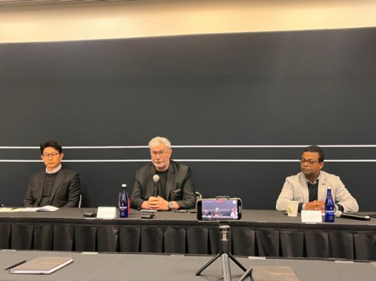 (왼쪽부터)송민규 제네시스사업본부 부사장, 루크 동커볼케 현대차그룹 글로벌디자인본부장(CDO) 겸 최고크리에이터(CCO) 사장, 테드 멘지스테 제네시스 북미법인 최고운영책임자(COO)/사진= 임찬영 기자 |