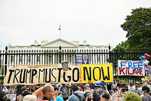 워싱턴 DC에서는 수천명의 시위대가 의사당과 워싱턴 기념비 사이에 위치한 공원인 내셔널 몰에 모여 트럼프 행정부가 행정 실수로 지난달 악명 높은 엘살바도르 교도소로 보낸 킬마르 아브레고 가르시아의 귀환을 요구하는 집회를 열었다.