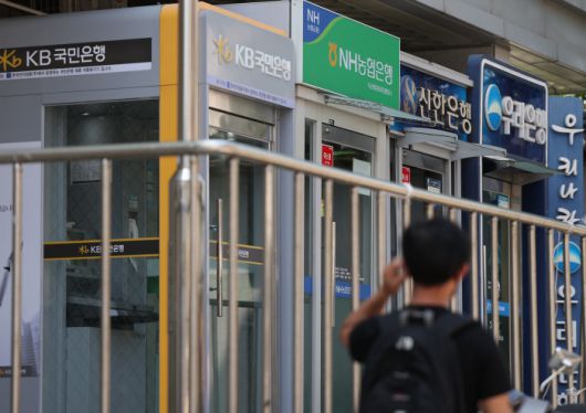 서울시내에 설치된 주요 은행들의 현금인출기 앞으로 한 시민이 걸어가고 있다. 연합뉴스 |