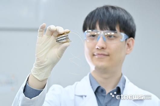 허성훈 KIST 전자융합소재연구센터 선임연구원팀이 개발한 에너지 수신 소자의 유연성을 시연하고 있다. |