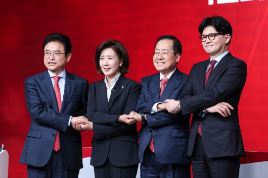 ‘찬탄(탄핵찬성)파’인 한동훈 후보는 “불법”이라고 강조한 반면, ‘반탄(탄핵반대)파’인 홍준표·나경원·이철우 후보는 “내란 몰이·탄핵 선동에 앞장섰다“며 한 후보를 몰아세웠다.