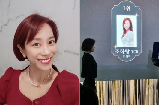 사진에는 조민아가 회사에서 전국 1위 '보험왕'으로서 상을 받는 모습이 담겼다. 수상 화면에는 조민아의 본명인 조하랑이라는 이름과 1위라는 성적이 적혀있다.