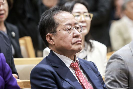 홍준표 제21대 대통령 선거 국민의힘 경선 후보가 20일 서울 구로구 연세중앙교회에서 열린 부활절 예배에 참석해 있다. |