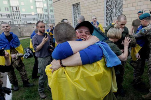 부활절 기적… 러·우크라 대규모 포로교환우크라이나의 비공개 장소에서 러시아, 우크라이나 포로교환이 이뤄진 19일(현지시간) 한 우크라이나 여성이 돌아온 군인 아들을 안고 있다. 러시아와 우크라이나는 이날 대규모 포로교환을 실시했으며 양측 모두 240명 이상의 포로를 서로에게 송환했다고 밝혔다. AFP연합뉴스 |