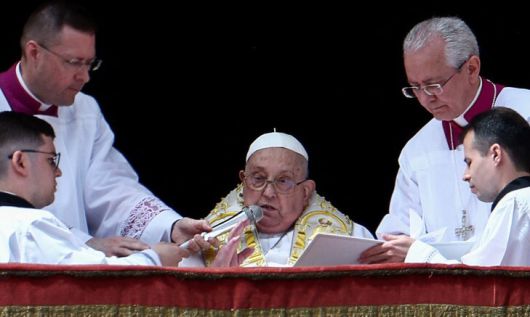 프란치스코 교황은 부활절인 20일(현지시각) 바티칸 성베드로 성당 발코니에 휠체어를 타고 나타나 수천명 신자들 앞에서 “형제 자매들, 즐거운 부활절입니다”고 천천히 말했다. 이어지는 교황의 메시지는 다른 성직자가 대독했다고 로이터 통신 등이 전했다. “종교의 자유, 표현의 자유 그리고 타인에 대한 존중이 없이 평화는 없다”는 메시지가 낭독되는 것을 교황은 옆에서 지켜봤다.
