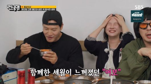 식사 시간, 지석진은 "나 계속 궁금했는데, 지효야 왜 종국이한테 여보라고 했냐"고 물었다. 송지효가 입을 열기도 전에 하하는 "그 여보가 따뜻했다"고 설명했다. 양세찬은 "30년 산 부부끼리 하는 '여보' 같았다"고 증언했다.