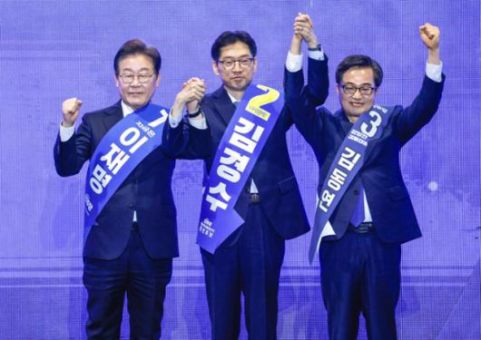더불어민주당 대선후보 순회경선에서 이변은 없었다. 이재명 전 대표가 어제 영남에서 90.81%, 19일 충청에서 88.15% 득표율로 압승했다. 김동연 경기지사는 3.26%와 7.54%, 김경수 전 경남지사는 5.93%와 4.31%를 각각 득표하는 데 그쳤다. 하지만 후보의 도덕성이나 정책과 관련해 치열한 논쟁을 찾아보기도 어렵고, 덩달아 유권자 관심도 끌지 못했다. ‘어대명’ 대세론이라 해서 대통령 후보 검증까지 부실해선 안 된다.