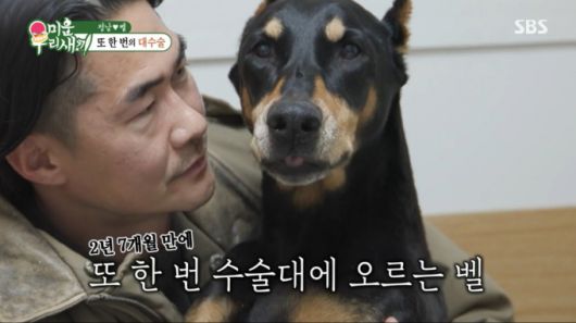 배정남의 반려견 벨이 큰 수술을 받고 위기를 넘겼다./사진=SBS '미운 우리 새끼' 캡처 |