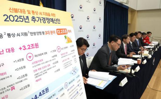 20일 관계 부처에 따르면 정부는 산불 대응과 통상·인공지능(AI) 지원을 위해 12조2000억원 규모의 추경안을 마련했다. 구체적으로 재해·재난대응에 3조2000억원, 통상리스크 대응과 AI 경쟁력 제고에 4조4000억원, 민생지원에 4조3000억원, 기타(국채이자, 주요 행사 개최 등) 2000억원 규모다.