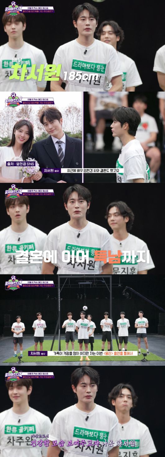 차서원은 '뭉찬4' 출연한다고 했을 때 가족 반응이 어땠냐는 질문에 "최근에 배우 엄현경과 결혼도 하고 떡두꺼비 같은 아들도 생겼다"며 "가족들이 걱정 많이 하지만 '뭉찬4'를 통해서 더 건강하고 멋있는 아빠의 모습 보여주고 싶어서 나왔다"고 밝혔다. 이를 들은 다른 출연자들은 "아빠 멋있다"는 말과 함께 박수와 응원을 보냈다.