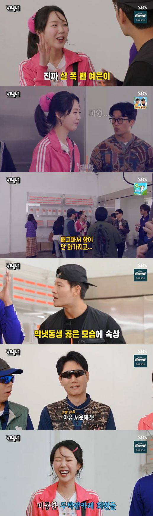 양세찬은 "살 너무 많이 빠졌어"라고 걱정하자 지예은은 "연예인 같죠"라고 물었지만, 지석진은 연신 "아니야"라고 말했다.