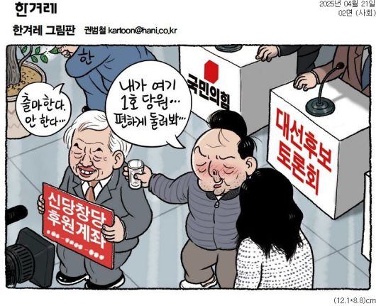 - 경선 주목도만 보자면, 승부가 결정난 민주당보다 국민의힘 쪽이 더 흥미진진한 건 사실입니다. 그러나 국민의힘은 이번 조기대선이 왜 열리게 됐는지에 대한 성찰을 먼저 해야 합니다. 성찰과 반성이 빠진 국민의힘 경선은 그냥 전당대회가 될 뿐입니다.