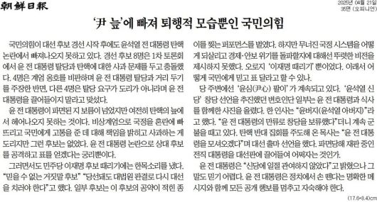 조선 = '尹 늪'에 빠져 퇴행적 모습뿐인 국민의힘