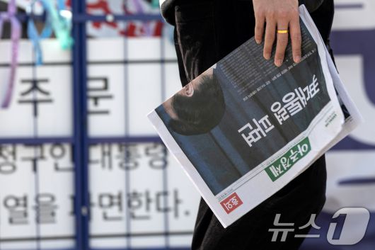 헌법재판소가 윤석열 대통령에 대한 탄핵을 인용한 4일 오후 서울 종로구 서십자각터 인근에서 한 시민이 관련 내용을 담은 신문 호외를 들고 발걸음을 옮기고 있다. 2025.4.4/뉴스1 ⓒ News1 이승배 기자