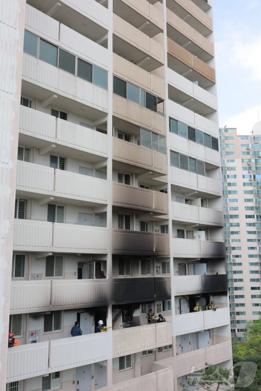 (서울=뉴스1) 박정호 기자 = 21일 서울 관악구 봉천동의 한 아파트에서 불이 나 외벽이 검게 그을려 있다. 소방당국에 따르면 이날 오전 8시 17분 봉천동 소재 21층 규모의 아파트 4층에서 화재가 발생해 신원미상의 남성 1명이 숨지고 4층에서 추락한 70~90대 여성 2명이 전신에 화상을 입는 등 크게 다쳐 병원으로 이송됐다. 2025.4.21/뉴스1