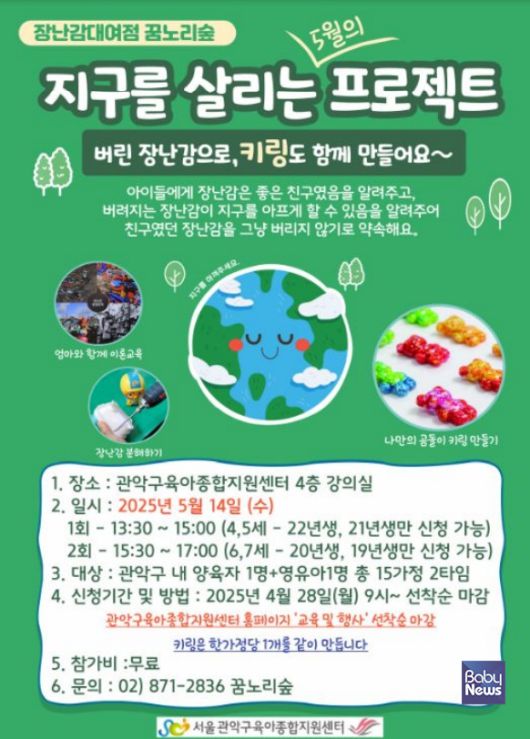 관악구육아종합지원센터 장난감대여점 꿈노리숲이 아이들과 함께 장난감과 지구를 지키는 특별한 여정을 시작한다고 지난 18일 밝혔다.