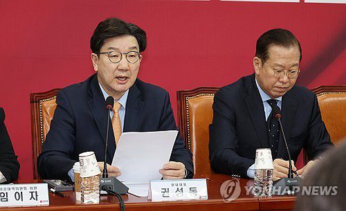 권 원내대표는 "민주당을 1인 독재 체제로 만들어 놓은 이재명 세력이 의회 권력에 이어 행정부 권력까지 장악하게 된다면 그것이 바로 1인 독재 국가로 달려가는 하이패스"라고 비판했다.