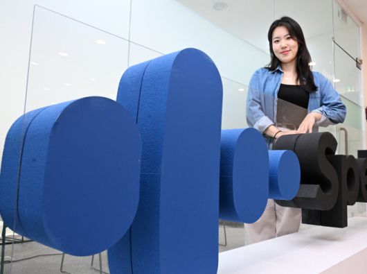 아시아투데이 박상선 기자 = 홍연승 스픽 한국 지사장이 지난 18일 서울 성동구 성수동 스픽 본사에서 진행한 본지 인터뷰에서 스픽 로고 모형물에 앉아 포즈를 취하고 있다. |