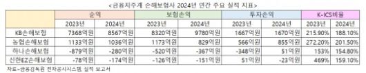 20일 한국금융신문이 금융지주계 손해보험사(KB손해보험·농협손해보험·하나손해보험·신한EZ손해보험) 2024년 연간 경영공시를 분석한 결과, KB손해보험 보험손익과 순익증가율이 4개사 중 가장 높은 것으로 나타났다.