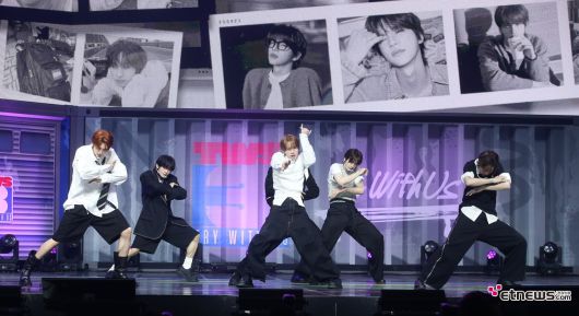 그룹 투어스(TWS/ 신유, 도훈, 영재, 한진, 지훈, 경민)가 21일 서울 용산구 블루스퀘어에서 진행된 미니 3집 '트라이 위드 어스'(TRY WITH US) 쇼케이스 일정에 참석했다.